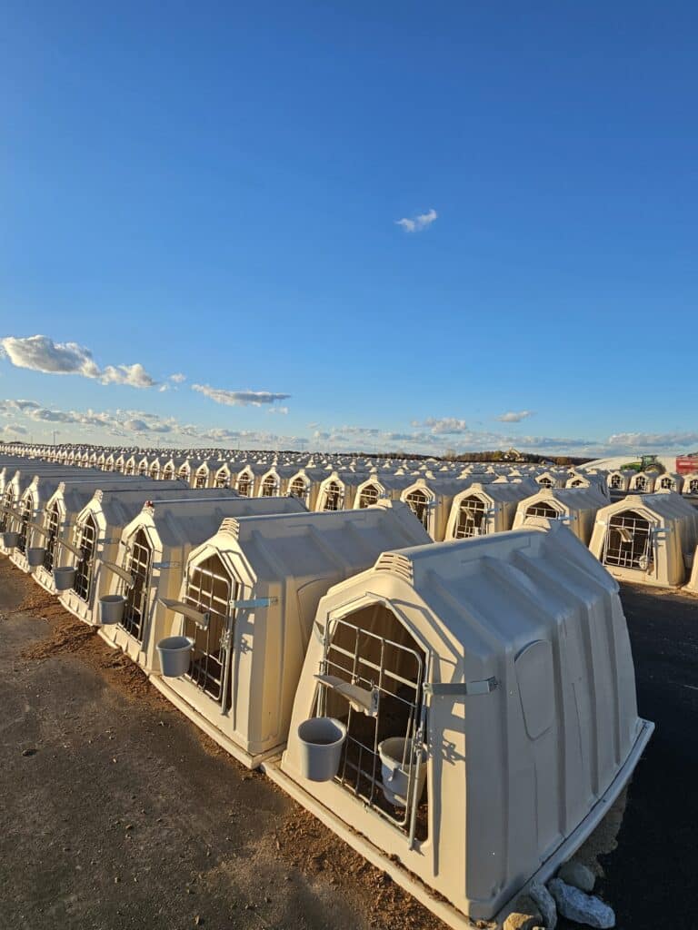 Elevated Calf System (Vyvýšený systém): Inovatívna búda umiestnená nad zemou. Zabezpečuje dokonalú čistotu a uľahčuje ošetrovateľom prístup k zvieraťu bez nutnosti ohýbania sa.